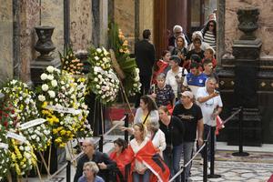 (250515) -- MONTEVIDEO, 15 mayo, 2025 (Xinhua) -- Personas asisten a la segunda jornada del velatorio del expresidente uruguayo, José "Pepe" Mujica, en el Palacio Legislativo, la sede del Parlamento, en Montevideo, capital de Uruguay, el 15 de mayo de 2025. Miles de uruguayos continuaban el jueves con su paso frente a la capilla ardiente del expresidente José "Pepe" Mujica, fallecido el pasado 13 de mayo a los 89 años de edad, en la segunda y última jornada del velatorio desarrollado en el Palacio Legislativo, en la ciudad de Montevideo. (Xinhua/Nicolás Celaya) (nc) (jg) (ah) (vf)