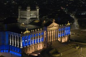 (250826) — MONTEVIDEO, 26 agosto, 2025 (Xinhua) — Imagen tomada con un dron el 25 de agosto de 2025 del Palacio Legislativo iluminado durante las celebraciones por su 100° aniversario, en Montevideo, capital de Uruguay. El Palacio Legislativo de Montevideo, sede del Parlamento uruguayo y considerado «símbolo de la democracia uruguaya», conmemoró el lunes su 100° aniversario, que coincide con la fecha de los doscientos años de la Declaratoria de la Independencia. (Xinhua/Nicolás Celaya) (nc) (jg) (ra) (vf)