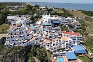 (260127) -- PUNTA DEL ESTE, 27 enero, 2026 (Xinhua) -- Vista aérea tomada con un dron el 24 de enero de 2026 de Casapueblo, en Punta del Este, en el departamento de Maldonado, Uruguay. En la emblemática península de Punta Ballena, frente al Río de la Plata, se alza Casapueblo. Más que una casa, es una "escultura habitable", el testamento en cemento y blanco del artista uruguayo Carlos Páez Vilaró. Desde su construcción en 1958, esta obra resumen la vocación universal de su creador. Hoy, guarda entre sus muros curvos un vínculo singular con China, forjado hace dos décadas. (Xinhua/Liu Yuchen) (nc) (oa) (ah) (vf)