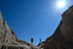 (260413) -- NUKUS, 13 abril, 2026 (Xinhua) -- Imagen del 11 de abril de 2026 de personas visitando el monumento de Chilpik, cerca de Nukus, Uzbekistán. Ubicado a más de 40 km al sur de Nukus, la capital de la República de Karakalpakistán en Uzbekistán, el monumento de Chilpik era un antiguo yacimiento arqueológico zoroástrico y posteriormente sirvió como torre de señales. (Xinhua/Li Renzi) (rtg) (ah) (ce)