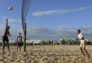 (260110) -- ANZOATEGUI, 10 enero, 2026 (Xinhua) -- Imagen del 9 de enero de 2026 de jóvenes jugando voleibol de playa, en Lechería, Anzoátegui, Venezuela. El Ejército estadounidense incautó el quinto petrolero presuntamente vinculado a Venezuela en la madrugada del viernes. (Xinhua/Lucio Tavora) (oa) (ra) (ce)