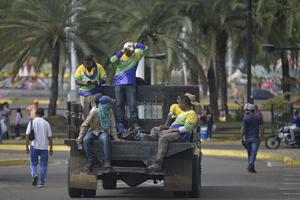 (260108) -- BOLIVAR, 8 enero, 2026 (Xinhua) -- Trabajadores viajan en la parte posterior de un camión, en Puerto Ordaz, estado Bolívar, Venezuela, el 8 de enero de 2026. (Xinhua/Lucio Tavora) (lt) (jg) (ra) (vf)