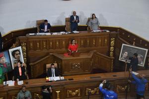 (250820) -- CARACAS, 20 agosto, 2025 (Xinhua) -- Diputados participan en una sesión de la Asamblea Nacional de Venezuela, en el Palacio Federal Legislativo, en Caracas, Venezuela, el 20 de agosto de 2025. El Parlamento venezolano aprobó el miércoles el Proyecto de Acuerdo en respaldo y defensa de la soberanía, la protección del territorio, las instituciones venezolanas y la paz, tras la postura de Estados Unidos de vincular a la nación sudamericana y al presidente, Nicolás Maduro, con el narcotráfico internacional. (Xinhua/Marcos Salgado) (ms) (da) (vf)