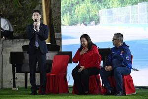 (251203) -- CARACAS, 3 diciembre, 2025 (Xinhua) -- Imagen del 2 de diciembre de 2025 del embajador de China en Venezuela, Lan Hu (i), hablando durante la inauguración de la Plaza de la Amistad China-Venezuela, en Caracas, Venezuela. La Plaza de la Amistad China-Venezuela fue inaugurada el martes en la avenida Boyacá de la Cota Mil, de Caracas, como un espacio público multifuncional que combina áreas deportivas, parques biosaludables y locales para emprendedores. (Xinhua/Li Muzi) (ah) (ra) (ce)