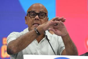 (250429) -- CARACAS, 29 abril, 2025 (Xinhua) -- El dirigente del Partido Socialista Unido de Venezuela (PSUV), y jefe del comando de campaña "Ven 25+", Jorge Rodríguez, habla durante una conferencia de prensa, en Caracas, Venezuela, el 29 de abril de 2025. La coalición de Gobierno en Venezuela, agrupada en el Gran Polo Patriótico, presentó el martes su comando de campaña de cara a los comicios parlamentarios y regionales del 25 de mayo próximo, confirmó el gobernante PSUV. (Xinhua/Marcos Salgado) (ms) (oa) (ah) (vf)