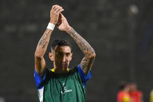 (260429) -- CARACAS, 29 abril, 2026 (Xinhua) -- Imagen del 28 de abril de 2026 del jugador Angel Di María, de Rosario Central, de Argentina, saludando al término del partido del grupo H de la jornada 3 de la fase de grupos de la Copa Conmebol Libertadores ante Universidad Central, de Venezuela, celebrado en el Estadio Olímpico de la Universidad Central de Venezuela, en Caracas, Venezuela. (Xinhua/Marcos Salgado) (ms) (ah) (ra) (vf)