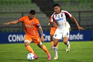 (250307) -- CARACAS, 7 marzo, 2025 (Xinhua) -- Imagen del 6 de marzo de 2025 del jugador Rommell Ibarra (i), de Deportivo La Guaira de Venezuela, disputando el balón con Jeriel De Santis (d), de Caracas FC de Venezuela, durante el partido correspondiente a la primera fase de la Copa Conmebol Sudamericana, celebrado en el Estadio Olímpico de la Universidad Central de Venezuela, en Caracas, Venezuela. (Xinhua/Marcos Salgado) (ms) (rtg) (ra) (vf)