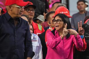 (260130) -- CARACAS, 30 enero, 2026 (Xinhua) -- Imagen del 29 de enero de 2026 de la presidenta encargada de Venezuela, Delcy Rodríguez (d), reaccionando durante un acto luego de la aprobación de la reforma de la Ley de Hidrocarburos, en Caracas, Venezuela. Rodríguez firmó el jueves la reforma a la Ley de Hidrocarburos y consideró que el nuevo instrumento jurídico es un "símbolo de unidad nacional". (Xinhua/Marcos Salgado) (ms) (rtg) (ra) (vf)