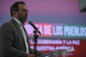 (251209) -- CARACAS, 9 diciembre, 2025 (Xinhua) -- El ministro de Relaciones Exteriores venezolano, Yván Gil, habla durante la apertura del evento denominado Asamblea de los Pueblos por la Soberanía y la Paz de Nuestra América, en Caracas, Venezuela, el 9 de diciembre de 2025. Gil afirmó el martes que ante el fracaso de las sanciones económicas, el gobierno de Estados Unidos recurre a la guerra psicológica contra Venezuela. (Xinhua/Marcos Salgado) (ms) (jg) (ra) (vf)