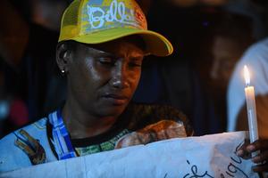 (250403) — CARACAS, 3 abril, 2025 (Xinhua) — Imagen del 2 de abril de 2025 de la familiar de un migrante deportado desde Estados Unidos a El Salvador reaccionando durante una vigilia frente a la Embajada de El Salvador, en Caracas, Venezuela. Decenas de familiares y allegados de los 238 jóvenes venezolanos deportados por Estados Unidos y encarcelados en El Salvador por disposición del país norteamericano, se movilizaron el miércoles en Caracas para solicitar una «fe de vida» de los detenidos y exigir su inmediata liberación. (Xinhua/Marcos Salgado) (ms) (da) (ra) (ce)