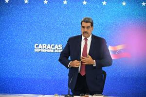 (250915) -- CARACAS, 15 septiembre, 2025 (Xinhua) -- El presidente venezolano, Nicolás Maduro, reacciona después de una rueda de prensa con medios nacionales e internacionales, en Caracas, Venezuela, el 15 de septiembre de 2025. Maduro dijo el lunes que las comunicaciones con el Gobierno de Estados Unidos se encuentran "deshechas" por ellos, ante la constante agresión. (Xinhua/Str) (ms) (rtg) (ah) (ce)