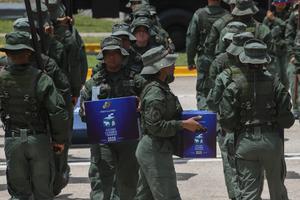 (250521) -- CARACAS, 21 mayo, 2025 (Xinhua) -- Elementos de la Fuerza Armada Nacional Bolivariana trasladan material electoral durante el acto de despliegue de la denominada "Operación República", en Caracas, Venezuela, el 21 de mayo de 2025. Autoridades venezolanas encabezaron el miércoles el despliegue de la denominada "Operación República", un dispositivo de seguridad que tendrá como objetivo resguardar todos los aspectos logísticos y operativos vinculados a las elecciones parlamentarias y regionales previstas para el próximo 25 de mayo. (Xinhua/Marcos Salgado) (ms) (ra) (vf)