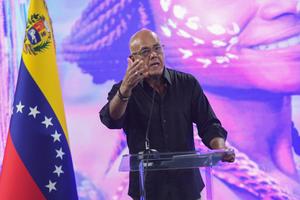 (250731) -- CARACAS, 31 julio, 2025 (Xinhua) -- Imagen del 30 de julio de 2025 del presidente de la Asamblea Nacional venezolana, Jorge Rodríguez, hablando durante el foro Voces del Nuevo Mundo, en Caracas, Venezuela. El foro Voces del Nuevo Mundo, un espacio en el que participan más de 200 delegados de medios de comunicación de alrededor de 50 países, diserta en Caracas, Venezuela, sobre la manipulación mediática, las noticias falsas y el concepto de verdad en el Sur Global. (Xinhua/Marcos Salgado) (ms) (rtg) (ra) (ce)