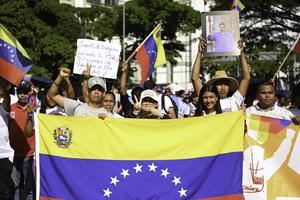 (260109) -- CARACAS, 9 enero, 2026 (Xinhua) -- Imagen del 8 de enero de 2026 de jóvenes participando en una manifestación, en Caracas, Venezuela. Una manifestación se llevó a cabo el jueves en la capital venezolana, Caracas, en la que jóvenes venezolanos exigieron al Gobierno estadounidense la liberación del presidente venezolano, Nicolás Maduro, y de su esposa. (Xinhua/Ding Hongfa) (jg) (ra) (vf)