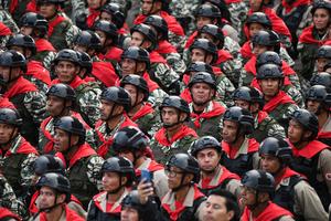 (250124) -- CARACAS, 24 enero, 2025 (Xinhua) -- Imagen del 23 de enero de 2025 de elementos de la Milicia Bolivariana participando en un acto con motivo a la jornada de ejercicios "Escudo Bolivariano 2025" frente al Palacio de Miraflores, en Caracas, Venezuela. El presidente de Venezuela, Nicolás Maduro, reiteró el jueves el respaldo al pueblo y Gobierno de Colombia en su lucha por la paz. (Xinhua/Marcos Salgado) (ms) (rtg) (ra) (vf)