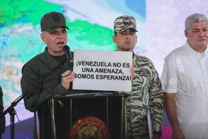 (250827) -- CARACAS, 27 agosto, 2025 (Xinhua) -- El ministro del Poder Popular para la Defensa de Venezuela, Vladimir Padrino López (i), habla durante una conferencia de prensa, en Caracas, Venezuela, el 27 de agosto de 2025. Padrino López exhortó el miércoles a la población a alistarse en la Milicia Nacional Bolivariana, y reiteró el rechazo a las acusaciones estadounidenses que pretenden vincular al Gobierno del presidente Nicolás Maduro con grupos criminales.(Xinhua/Marcos Salgado) (ms) (ah) (ra) (vf)