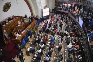 (251204) -- CARACAS, 4 diciembre, 2025 (Xinhua) -- Diputados participan en la sesión plenaria para la presentación del Proyecto de Ley de Presupuesto para el año 2026, en el Palacio Federal Legislativo, en Caracas, Venezuela, el 4 de diciembre de 2025. (Xinhua/Marcos Salgado) (ms) (jg) (ah) (vf)