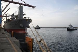 (251110) -- LA GUAIRA, 10 noviembre, 2025 (Xinhua) -- Un buque de carga permanece atracado mientras es cargado con ayuda humanitaria que será enviada a Cuba, en el Puerto Internacional de La Guaira, en el estado de La Guaira, Venezuela, el 10 de noviembre de 2025. El 28 de octubre, Melissa tocó tierra en Jamaica como huracán categoría 5, antes de su paso hacia el norte con categoría 3 para afectar a Cuba, Haití y República Dominicana con lluvias torrenciales y vientos de hasta 200 km por hora. En Cuba, el meteoro azotó durante varias horas la provincia oriental de Santiago con inundaciones y daños a viviendas, cultivos e infraestructura. (Xinhua/Marcos Salgado) (ms) (rtg) (ah) (ce)