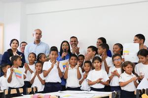 (260112) — LA GUAIRA, 12 enero, 2026 (Xinhua) — Imagen proveída por la Presidencia de Venezuela, de la presidenta encargada de Venezuela, Delcy Rodríguez (c), hablando durante la inauguración del curso escolar, en Catia la Mar, estado La Guaira, Venezuela, el 12 de enero de 2026. Rodríguez aseguró el lunes que en el país sudamericano «hay un gobierno que manda» y que avanza en las relaciones internacionales con respeto. (Xinhua/Presidencia de Venezuela) (ms) (oa) (ah) (vf)