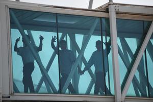 (250502) -- LA GUAIRA, 2 mayo, 2025 (Xinhua) -- Migrantes venezolanos repatriados desde Estados Unidos saludan a su llegada al Aeropuerto Internacional Simón Bolívar, en Maiquetía, estado de La Guaira, Venezuela, el 2 de mayo de 2025. Otros 183 repatriados venezolanos llegaron la tarde del viernes a la nación suramericana procedentes de Honduras, señaló el ministro de Interior, Justicia y Paz, Diosdado Cabello, quien recibió el vuelo número 18 con migrantes. (Xinhua/Marcos Salgado) (ms) (rtg) (ra) (ce)