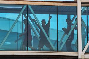 (250509) -- LA GUAIRA, 9 mayo, 2025 (Xinhua) -- Ciudadanos venezolanos deportados desde Estados Unidos reaccionan a su llegada al Aeropuerto Internacional Simón Bolívar, en Maiquetía, estado de La Guaira, Venezuela, el 9 de mayo de 2025. Otros 168 ciudadanos venezolanos deportados desde Estados Unidos arribaron al Aeropuerto Internacional de Maiquetía que sirve a la ciudad de Caracas, en una aeronave de matrícula estadounidense, confirmaron el viernes las autoridades venezolanas. (Xinhua/Marcos Salgado) (ms) (jg) (da) (vf)