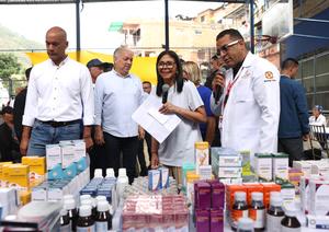 (260110) -- MIRANDA, 10 enero, 2026 (Xinhua) -- Imagen proveída por la Presidencia de Venezuela de la presidenta encargada venezolana, Delcy Rodríguez (2-d), liderando el despliegue integral y supervisando la soberanía alimentaria, en Petare, estado Miranda, Venezuela, el 10 de enero de 2026. Rodríguez juró el sábado ante el pueblo venezolano que, mediante su gestión al frente del país sudamericano, logrará el regreso del presidente Nicolás Maduro y de su esposa Cilia Flores, capturados ilegalmente por Estados Unidos el pasado 3 de enero. (Xinhua/Presidencia de Venezuela) (jg) (ra) (ce)
