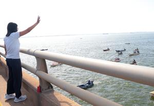 (260419) -- ZULIA, 19 abril, 2026 (Xinhua) -- Imagen proveída por la Presidencia de Venezuela de la presidenta encargada venezolana, Delcy Rodríguez, saludando durante el inicio de la "Gran Peregrinación Nacional" en el Puente General Rafael Urdaneta, en el estado Zulia, Venezuela, el 19 de abril de 2026. Organizaciones sociales, políticas y religiosas iniciaron el domingo en Venezuela la llamada "Gran Peregrinación Nacional" convocada por Rodríguez para exigir el cese de las sanciones estadounidenses y pronunciarse en favor de la paz, informó el Gobierno del país sudamericano. (Xinhua/Presidencia de Venezuela) (ms) (da) (ah)
