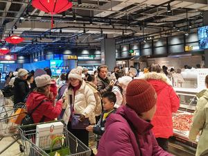 (250301) -- BEIJING, March 1, 2025 (Xinhua) -- People shop at a supermarket in Shijingshan District in Beijing, capital of China, Feb. 8, 2025. (Xinhua/Xie Xiyao)