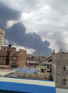 (250506) -- SANA, 6 mayo, 2025 (Xinhua) -- Imagen tomada con un teléfono celular de denso humo elevándose desde el Aeropuerto Internacional de Saná tras los ataques aéreos, en Saná, Yemen, el 6 de mayo de 2025. Intensos ataques aéreos fueron lanzados el martes por la tarde contra la capital yemení de Saná y la provincia septentrional de Amran, dijeron residentes locales. Israel confirmó más tarde que llevó a cabo los ataques contra instalaciones de infraestructura, incluyendo un aeropuerto y centrales eléctricas. (Xinhua) (jg) (ra) (vf)