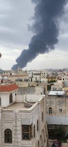 (250506) -- SANA, 6 mayo, 2025 (Xinhua) -- Imagen tomada con un teléfono celular de denso humo elevándose desde el Aeropuerto Internacional de Saná tras los ataques aéreos, en Saná, Yemen, el 6 de mayo de 2025. Intensos ataques aéreos fueron lanzados el martes por la tarde contra la capital yemení de Saná y la provincia septentrional de Amran, dijeron residentes locales. Israel confirmó más tarde que llevó a cabo los ataques contra instalaciones de infraestructura, incluyendo un aeropuerto y centrales eléctricas. (Xinhua) (jg) (ra) (vf)