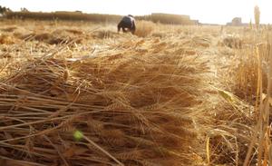 (251101) -- SANA, 1 noviembre, 2025 (Xinhua) -- Imagen del 31 de octubre de 2025 de un agricultor cosechando trigo de su granja, en las afueras de Saná, Yemen. (Xinhua/Mohammad Mohammad) (jg) (da)